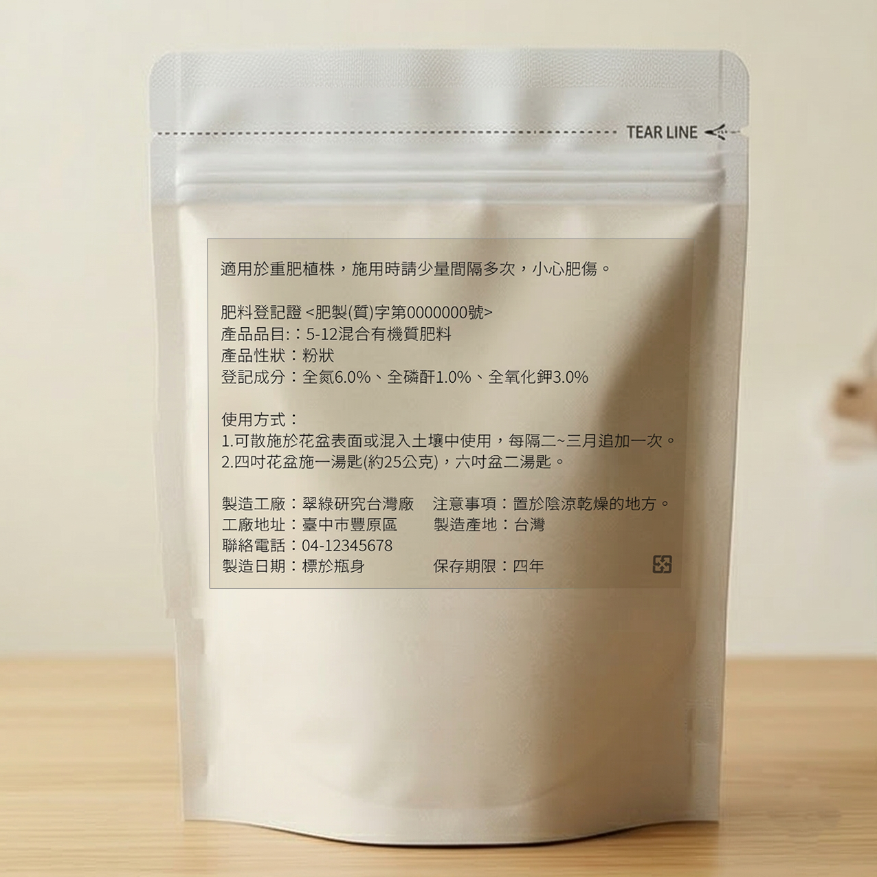 肥料登記證: 肥製(質)字第0000000號